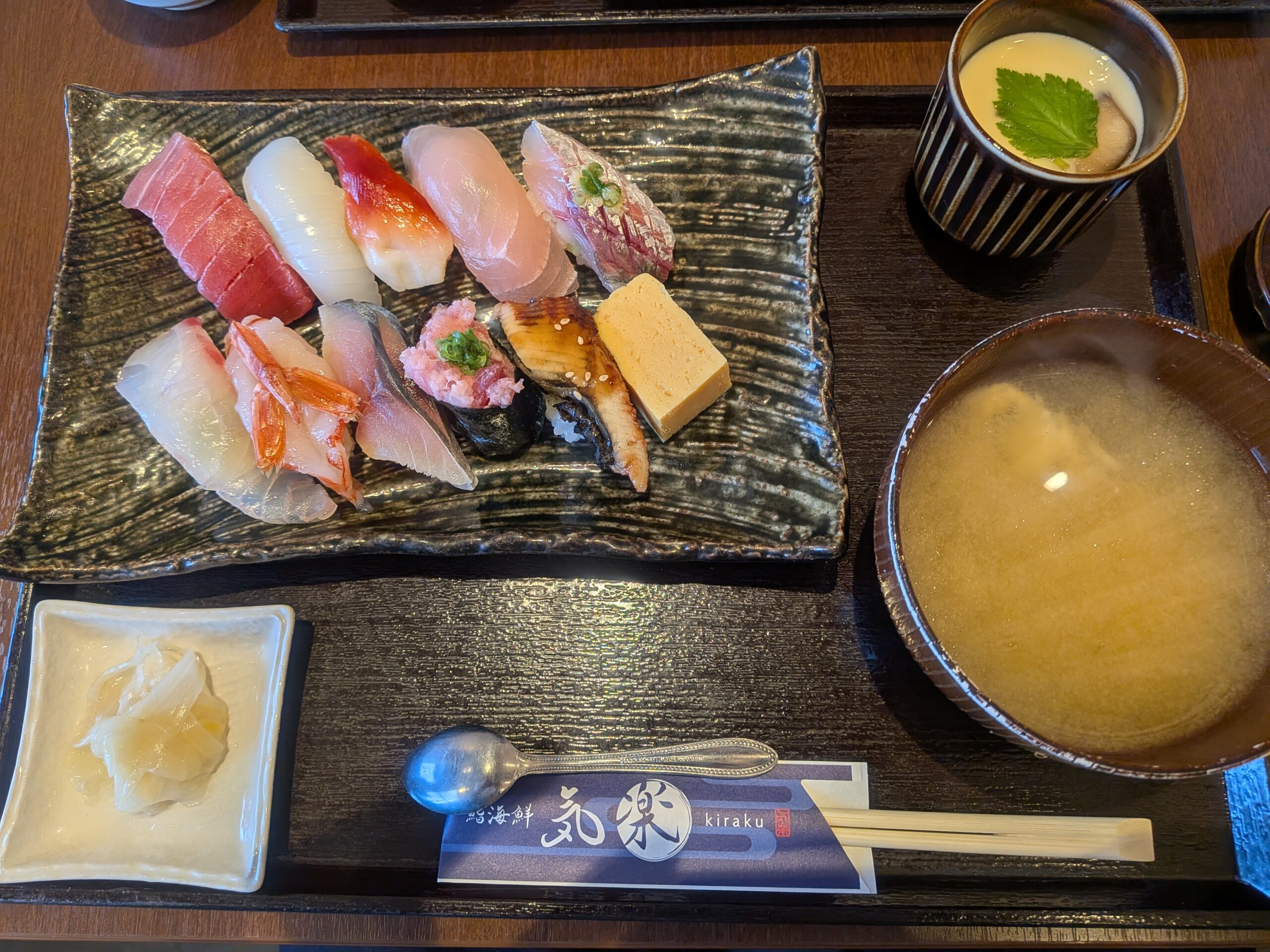 鮨海鮮 気楽のランチメニュー「おまかせ日替わり10貫盛」を実食レビュー