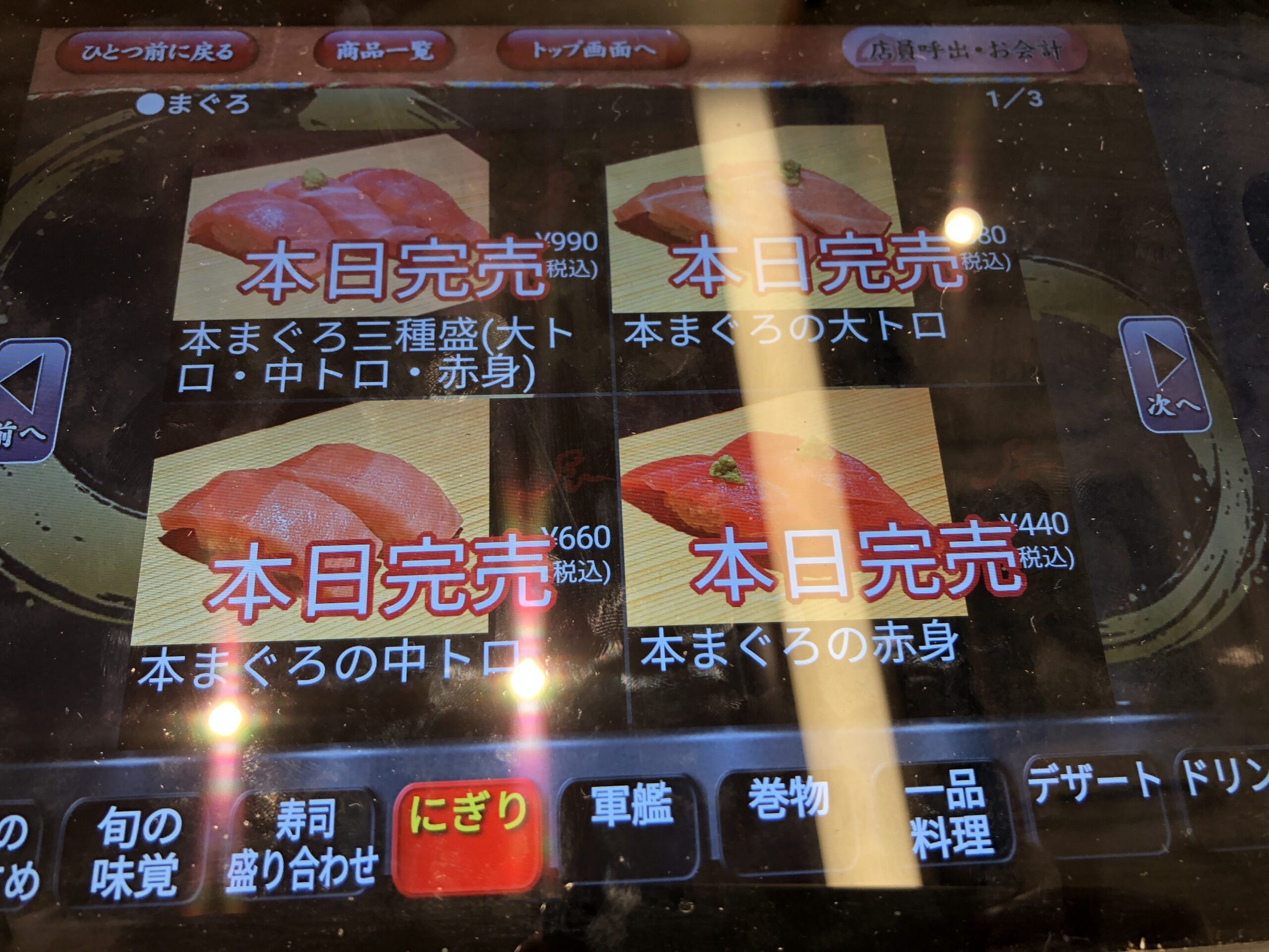 人気店ゆえに仕入れが追いつかないのか、あるいはピークの時間帯ではこうした状況が常なのかは分かりませんが、期待していた分、驚きが大きかったです。